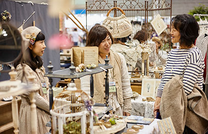 - 会場には一般来場者の他に、小売店や百貨店のバイヤー、協業者を探すメーカー、メディアなどさまざまなビジネス目的の来場者が訪れます。イベントをきっかけに新たなビジネスを作ってください。クリエイター同士の出会いによる広がりも期待できます。