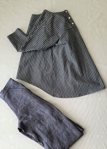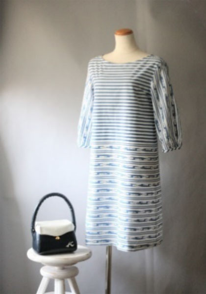 横浜のプリントや染の職人さんで作るギルダ横濱さんと出逢い、横浜のシンボルである三塔をモチーフとした生地があると生地を見せていただいた時にそれを活かしてお洋服を作りたい!