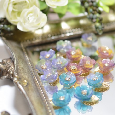手作業で作り出したディップフラワーやプラバンフラワーを使ったアクセサリーは全く同じものは存在しない一点物です。《貴女だけのアクセサリー》という贅沢を気軽に楽しんでいただきたく、ひとつひとつ心を込めてお作りしています。