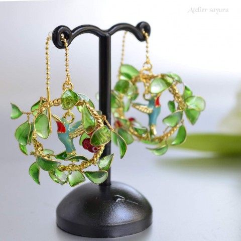 プラバンやワイヤーから手作業で作り出したボタニカルチャームをアクセサリーにしました。