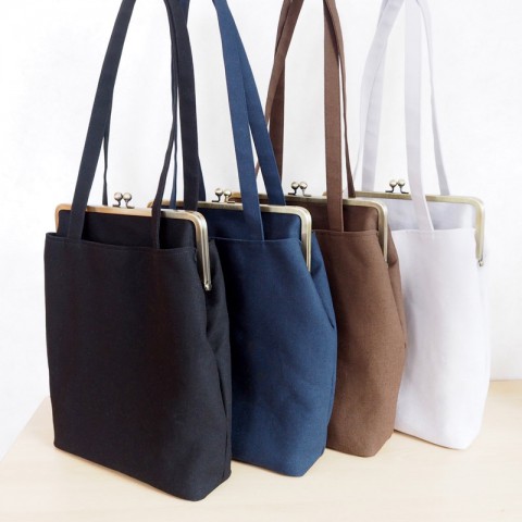がま口バッグはA4クリアファイルが入るバッグ、斜め掛けバッグなどを販売予定。