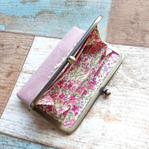 ●仕切りのあるがまぐち(S) (M)… がまぐち内側に仕切りを付け、コインとお札を分けて入れられるようにしました。