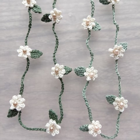 ●白いおはなのチョーカー…かぎ針編みであんだチョーカーです。手首に2重にして着ければ、ブレスレットにもなります。