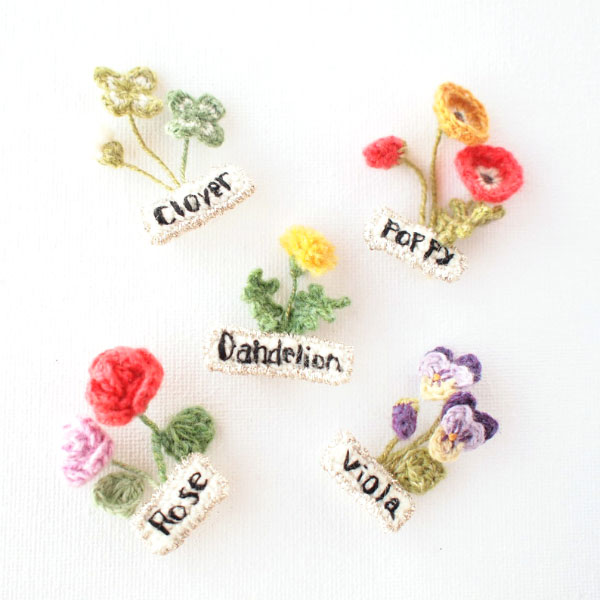 娘の髪がのびて、かわいいヘアゴムを探していたのですが、なかなか思い通りのものがなく、得意な編み物で立体のお花のモチーフを作り、それをヘアゴムにしたのが、作品作りのきっかけです。