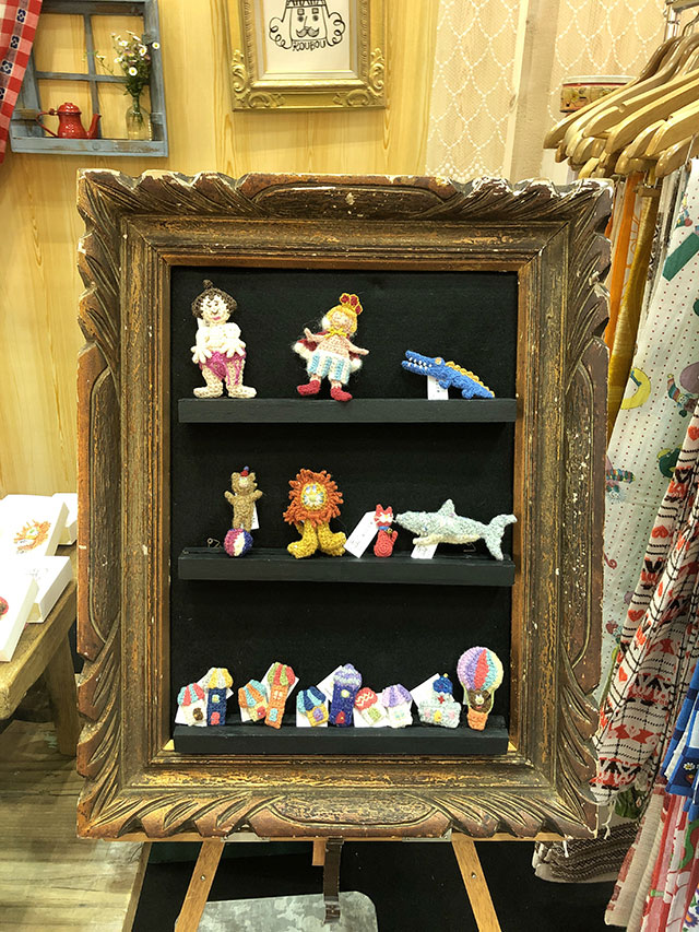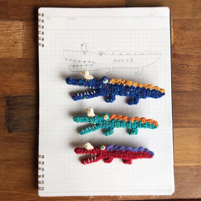 大人が楽しめる、カラフルでファニーなアクセサリーをコンセプトに、極細の糸で、同形2枚のモチーフを編み、それをはぎ合わせるというオリジナルの製法のあみぐるみで、ブローチなどのアクセサリーを製作しています。海外の絵本の登場人物ようなイメージで製作しています。